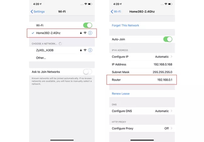 با مرورگر گوشی هوشمندتان (در اکثر مواقع کروم در اندروید و سافاری در آیفون)، به آدرس روتر خود بروید. آدرس پیش فرض روترها معمولا 192.168.1.1 است که باید آن را در نوار آدرس مرورگر وارد کرده و واردش شوید. البته اگر این آدرس روتر شما نبود، میتوانید در اینترنت به دنبال آن بگردید یا اینکه برچسب زیر یا کنار مودم خود را ببینید که اغلب حاوی این آدرس است. علاوه بر این، در بخش اطلاعات مربوط به وای فای آیفون و گوشی های اندرویدی هم این آدرس در بخش Router به چشم میخورد.