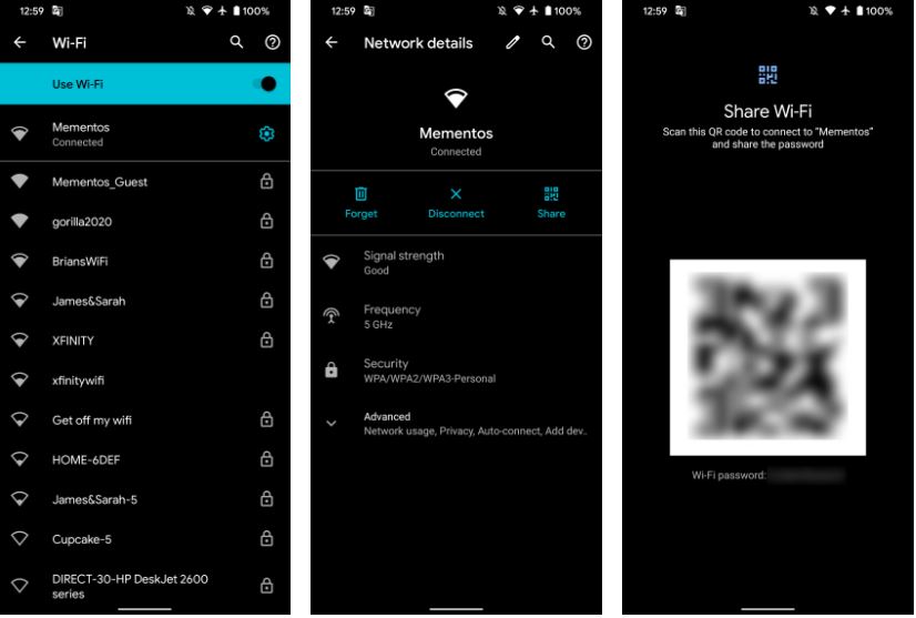 این پسورد را میتوانید با دیگران به اشتراک بگذارید، با این حال میتوانید کار سادهتری انجام دهید که آن، اسکن کردن کد QR است. دستگاه دوم میتواند بدون وارد کردن پسورد و تنها با اسکن کد QR، به شبکه متصل شود. این موضوع برای گوشیهای اندرویدی و آیفون که میخواهند به شبکه متصل شوند، صادق است.