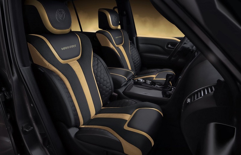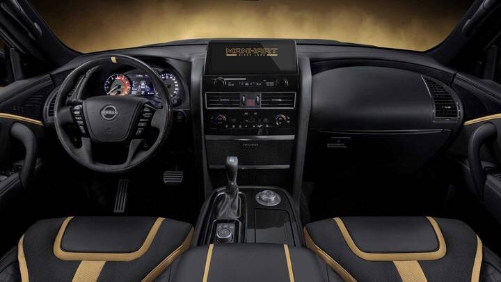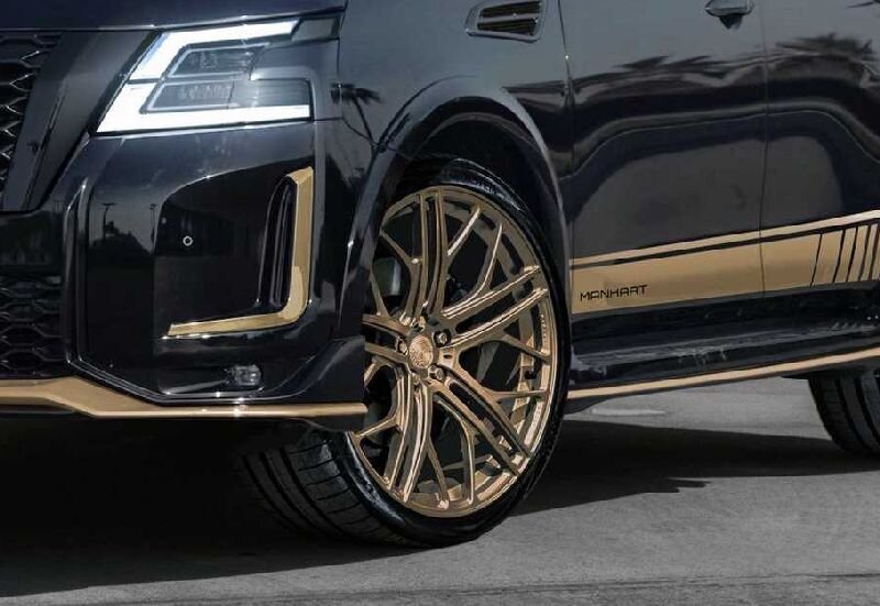 پاترول حاضر در پروژه جذاب منهارت، نسخه اسپرت نیسمو است که فیسلیفت آن سال گذشته رونمایی شد. از لحاظ طراحی همانند پروژههای پیشین منهارت، نیسان پاترول هم به خاطر ترکیب رنگ مشکی و طلایی، جلوه خاصی دارد. مکمل این ترکیب رنگ زیبا، رینگهای طلایی غول پیکر ۲۴ اینچی هستند.