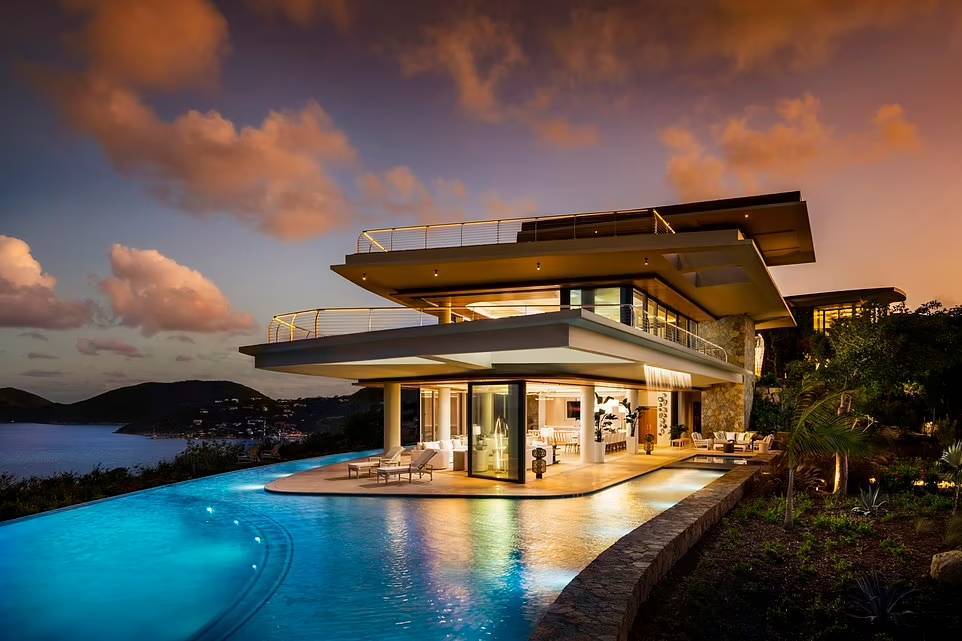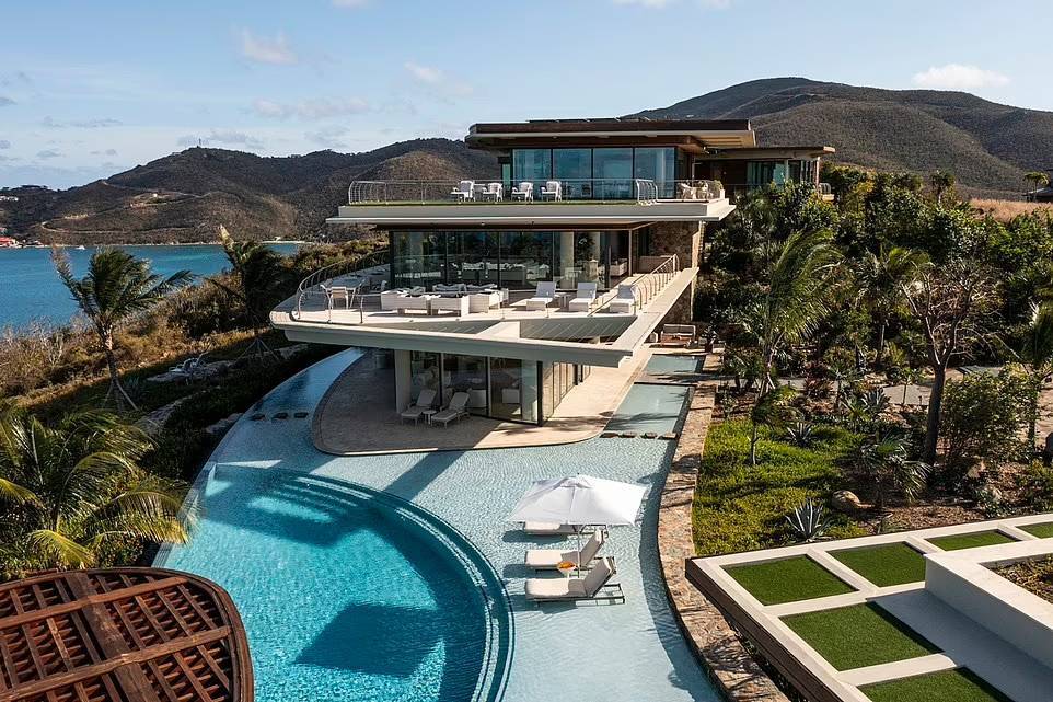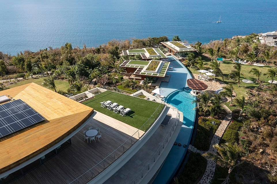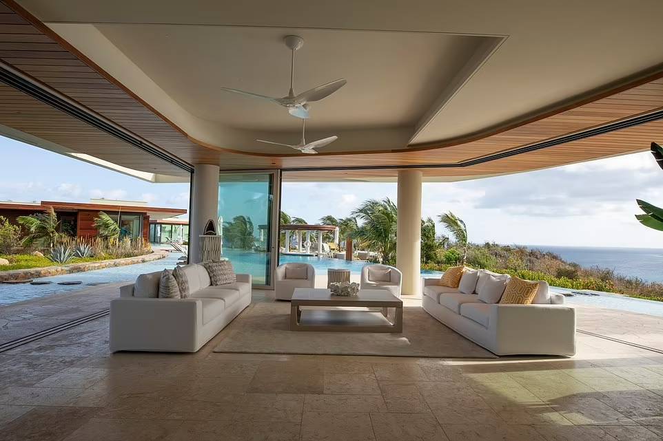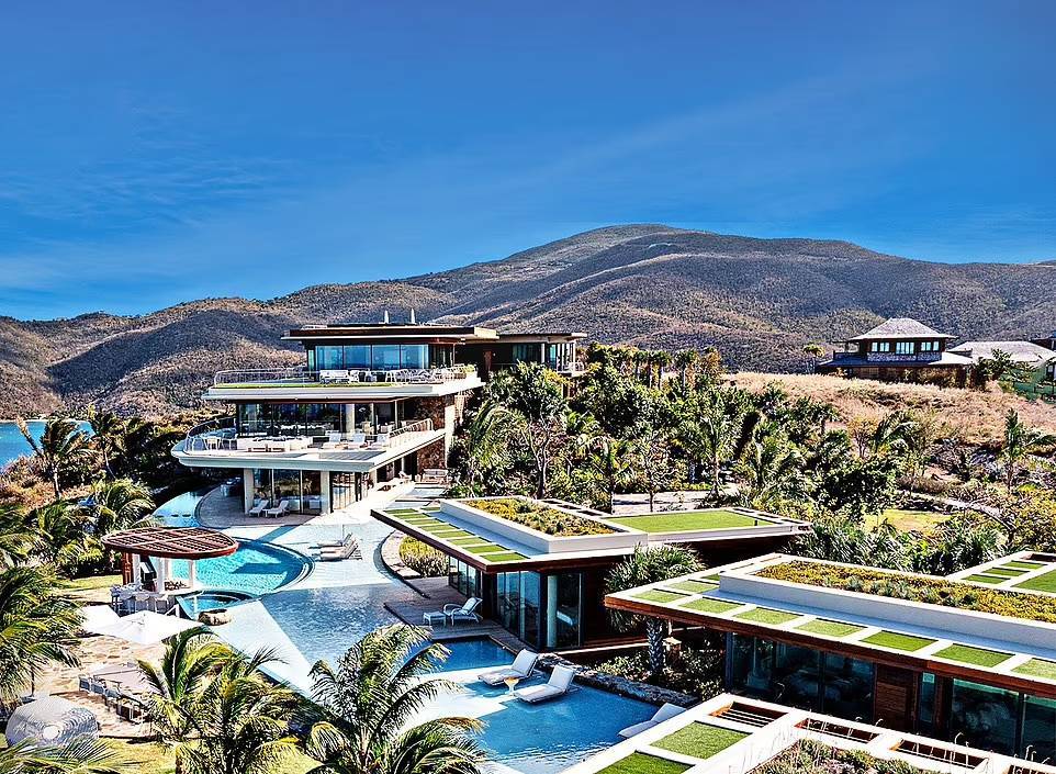 املاک برانسون شامل سه خانه مجزاست که با راهروهای چوبی به هم متصل شدهاند و حال و هوای سنتیتری دارد. حداکثر ۲۲ نفر می توانند در آنجا اقامت داشته باشند و البته ساحل خصوصی خود را خواهند داشت.