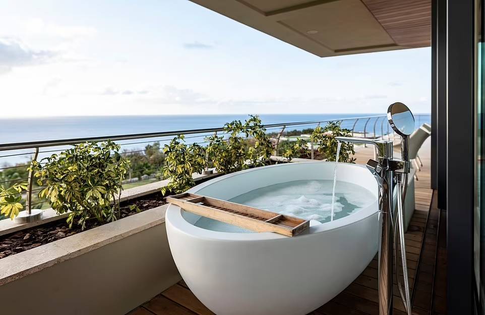یکی از این ملک ها، شبیه یک قایق بادبانی غولپیکر است با چهار عرشه، که به طور کامل با نردههایی در طبقات بالا پیچیدهشده است. همچنین یک منطقه شنا وجود دارد که در شب با چراغ روشن می شود.
