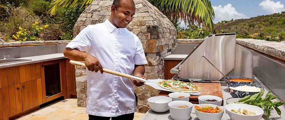 درها و پنجرهها از کف تا سقف به نحوی در طول روز ناپدید میشوند و مناظری بیوقفه از جزایر مختلف دیگری را در معرض دید قرار می دهند.