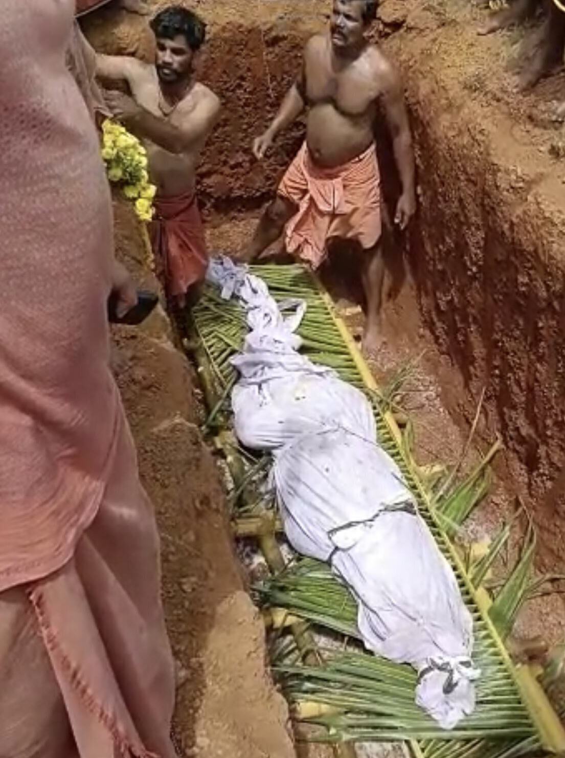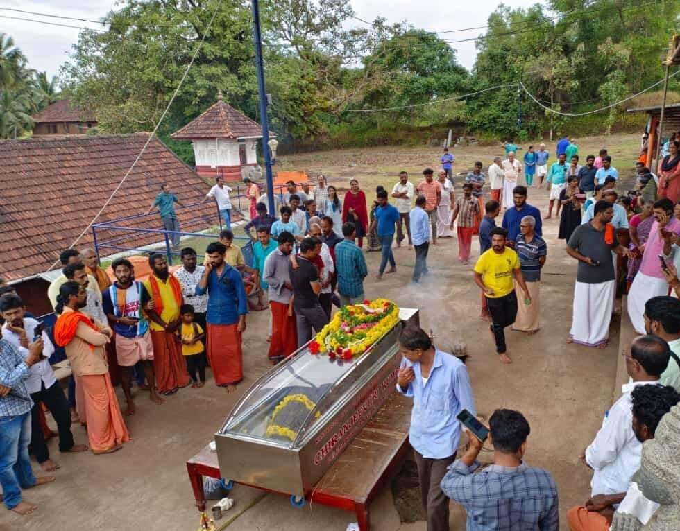 صدها نفر روز دوشنبه در مراسم تشییع جنازه یک در هند شرکت کردند که گمان میرود الهی بوده و برای دههها با رژیم گیاهخواری در معبد هندوها زنده مانده است.