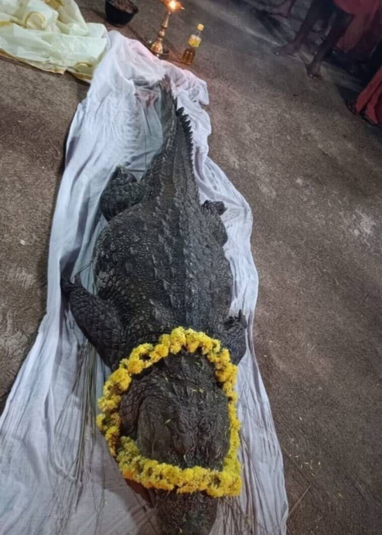 تمساح که بابیا نام داشت بخشی از معبد هندوها در کومبلا در منطقه کاساراگود بود و قبل از خاکسپاری، لاشهاش برای چند ساعت در فریزر متحرک نگهداری شد تا هندوها بتوانند به آن ادای احترام کنند.