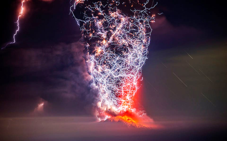 در شیلی آتشفشان با صاعقه همزمان شده و صحنه فوق العاده ای به وجود آورده است.