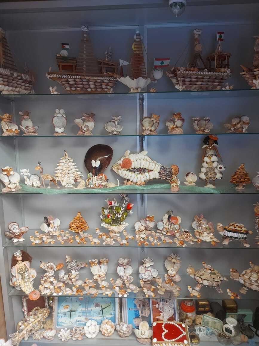 یک مرد لبنانی با مصنوعاتی که از صدفهای دریایی ساخته شده است، امرار معاش میکند.