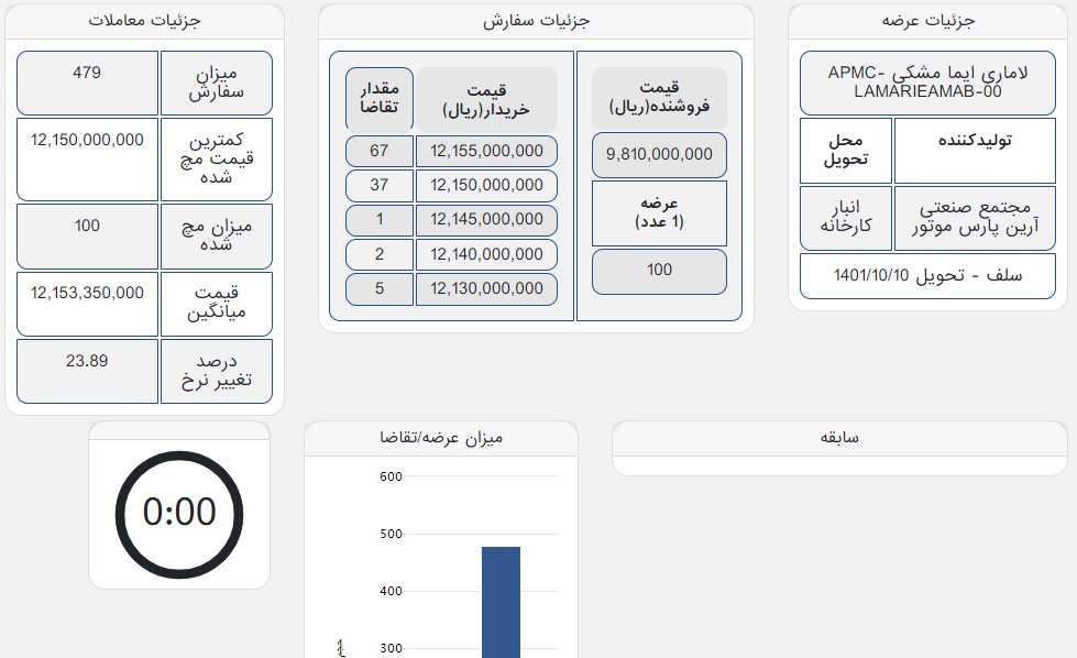معاملات 100 دستگاه لاماری ایمای مشکی هم با قیمت پایه یک میلیارد و 215 میلیون تومان و قیمت تمام شده حدود یک میلیارد و 350 میلیون تومان انجام شد.