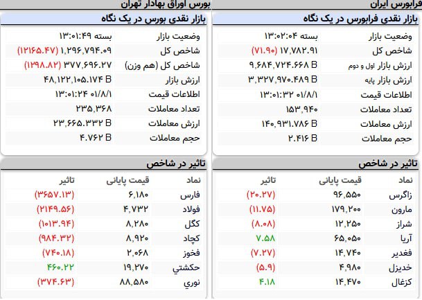 شاخص فرابورس نیز امروز بیش از ۷۱ واحد کاهش داشت و به ۱۷ هزار و ۷۸۲ واحد رسید.