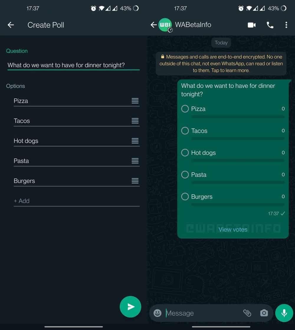 واتساپ با انتشار نسخهی آزمایشی جدید در گوگلپلی، امکان ایجاد نظرسنجی را در چتهای دونفره و خصوصی، دراختیار کاربران قرار داده است.