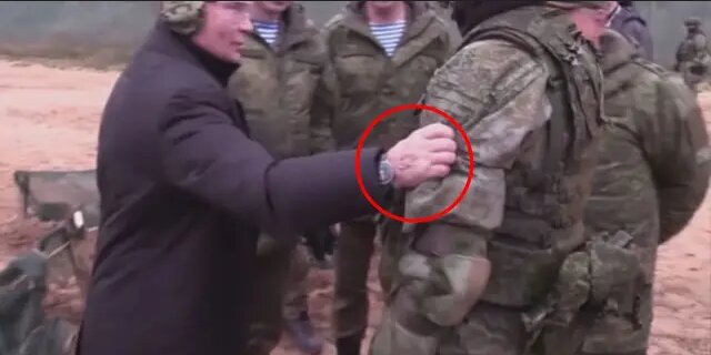 به گزارش سایت طلا به نقل از شبکه خبری فاکس نیوز، در ویدیویی که وزارت دفاع روسیه از حضور ولادیمیر پوتین، رئیسجمهوری این کشور در تمرین نظامی سربازان کشورش منتشر کرد، پوتین عینک و گوشگیر داشته و تیراندازی با اسنایپر را تمرین میکند. او سپس برای بلند شدن از جایش، دست یکی از سربازان را میگیرد و در این لحظه است که اثر چیزی شبیه به جای تزریق روی دستش دیده میشود.