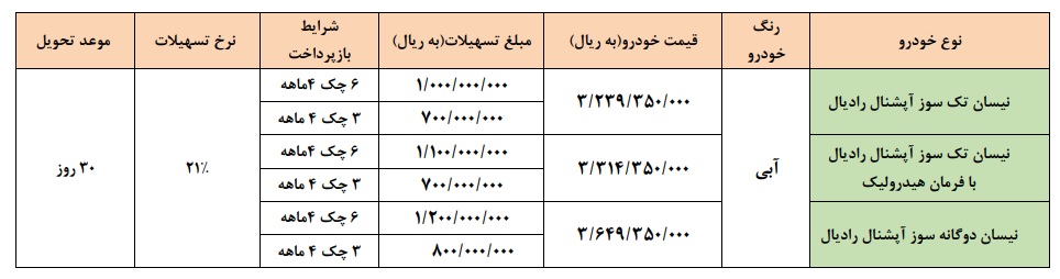 طرح فروش اقساطی وانت نیسان بنزینی و دوگانه سوز ویژه آبان ماه 1401 از فردا آغاز خواهد شد.
