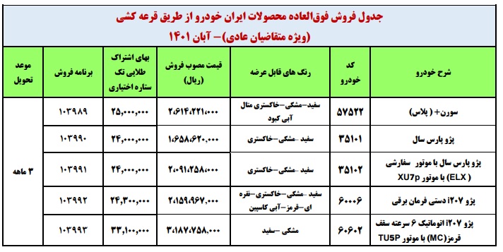 دور جدید فروش فوق العاده محصولات ایران خودرو ویژه آبان ماه 1401 بصورت قرعه کشی از پنجشنبه آغاز شد.