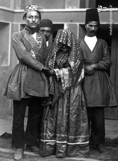 تصویری جالب از یک عروس و داماد در زمان قاجار