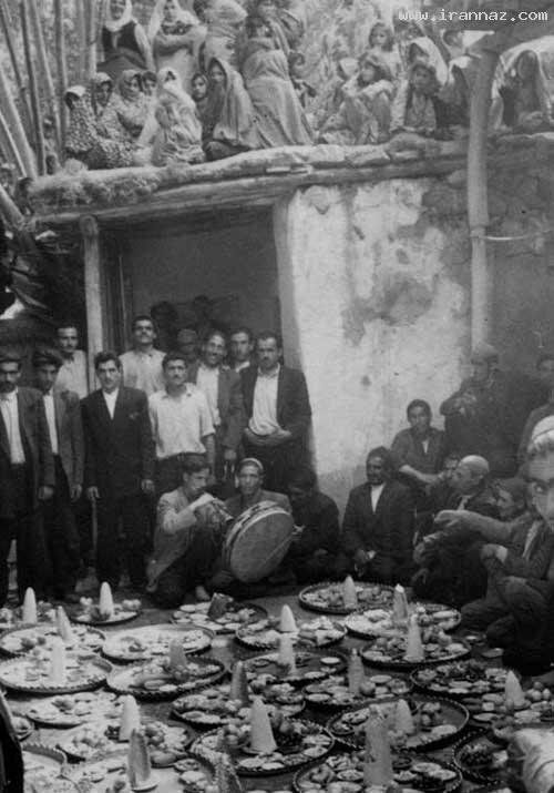 مجمعهایی از میوه و شیرینی در مراسم عروسی در یکی از روستاهای چالوس در دهه ۱۳۴۰