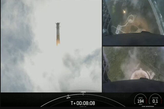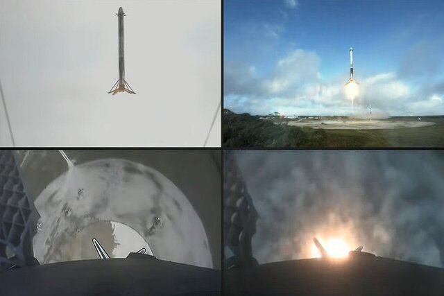"کیت تایس"(Kate Tice)، مدیر مهندسی سیستمهای کیفی شرکت اسپیس ایکس، در پخش زنده پرتاب گفت: ما هر دو تقویتکننده جانبی فالکون هوی را با موفقیت در منطقه فرود ۱ و منطقه فرود ۲ فرود آوردهایم. چه منظره باورنکردنی است. با استفاده از این دو تقویتکننده جانبی، این رویداد، ۱۵۰ و صد و پنجاه و یکمین فرودهای موفقیتآمیز یک موشک کلاس مداری را رقم زد.