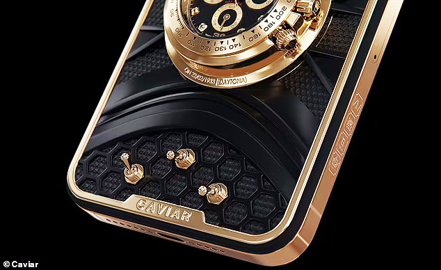 طراحان شرکت کاویار (Caviar) این هفته از یک گوشی هوشمند لوکس رونمایی کردند که یک ساعت طلای زرد رولکس مدل کازموگرف دیتونا (Cosmograph Daytona) با هشت الماس در آن به کار رفته است. با این اوصاف جای تعجب نیست که این گوشی هوشمند با قیمت گزاف ۱۱۷ هزار و ۱۹۹ پوند (۱۳۵ هزار و ۴۲۰ دلار) عرضه شود.