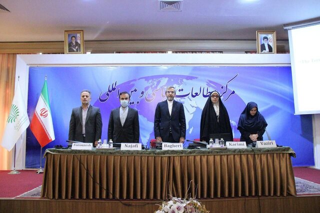 در این نشست که با حضور علی باقری، معاون سیاسی و رضا نجفی، معاون امور حقوقی و بینالمللی وزارت امور خارجه برگزار شد، معاون سیاسی وزارت امور خارجه طی سخنانی با اشاره به حمله تروریستها به شهروندان بیگناه ایرانی در حرم شاهچراغ گفت: «حمله تروریستیِ شیراز، گواه دیگری بر حقانیت مسیر ما مبنی بر ایستادگی بیامان در برابر افراطگرایی خشونتآمیز و تروریسم داعش در منطقه است.»