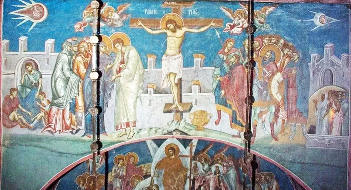 هیچ چیز نمی تواند چیزهای عجیب و غریب در تاریخ را توجیه کند؛ همین امر در مورد نقاشی دیواری ارائه شده در بالا نیز صدق می کند. این نقاشی دیواری در داخل صومعه Decani در ویسوکی، صربستان به نمایش گذاشته شدهاست.