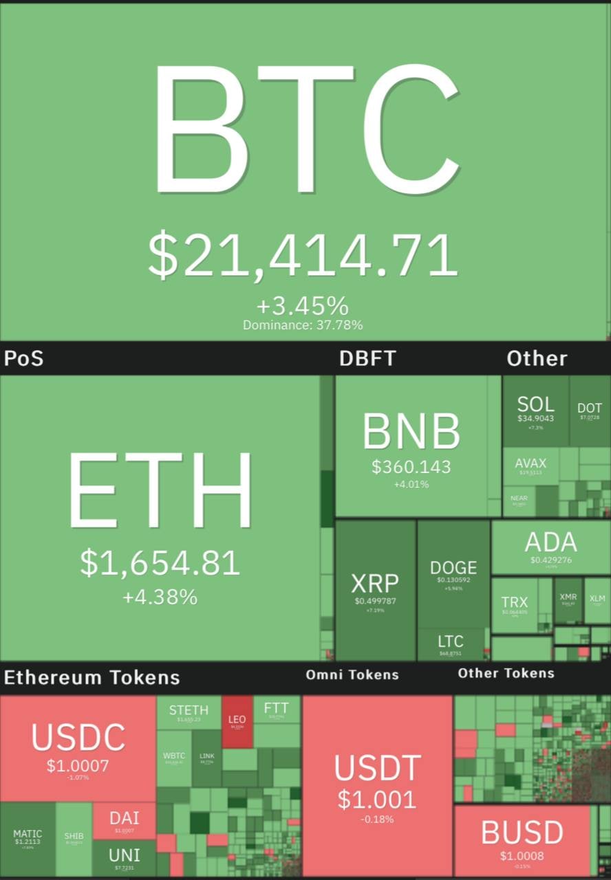 کل بازار به دلیل سود حاصل از ارزش اتریوم، بایننس، پالی گان و دوج کوین بیش از ۶۰ میلیارد دلار به سرمایه خود افزوده و بیت‌کوین نیز در هفت روز گذشته سه درصد افزایش یافته و در حال حاضر ارزش آن ۲۱ هزار دلار است.
