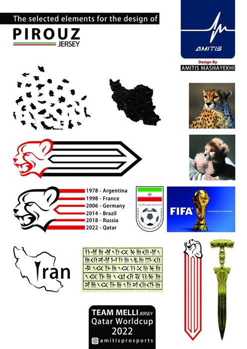 وی خاطرنشان کرد: تصاویر روی این لباس استانهای ایران است اما تداعی پوست یوز ایرانی است، همه ایران باهم یک یوز است و دریای خزر و خلیج فارس در این طراحی در بالا و پایین این طرح به چشم میخورد و نمادی است که ما میتوانیم حتی با پوشاک هویت ملی خودمان را بازتولید کنیم. برای طراحی این لباس از نمادهای تاریخی نیز استفاده شده است و ۶ خط در این لباس نشان دهنده ۶ دوره حضور ایران در جام جهانی است.