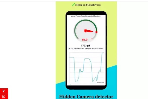 این اپلیکیشن ادعا میکند که از کاربران در برابر هرگونه دوربین و میکروفون مخفی محافظت میکند. کاربران فقط باید دوربین را به جسم مشکوک نزدیک کنند تا برنامه دوربین مخفی را تشخیص دهد. همچنین دارای یک مغناطیس سنج است که میتواند هر گونه فعالیت مغناطیسی هدفون و دوربین را تشخیص دهد. یک رادیومتر نیز وجود دارد که میتواند دوربینهای مادون قرمز را تشخیص دهد.