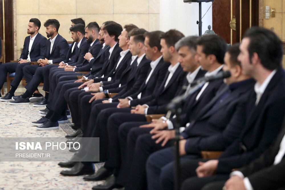 تصاویری متفاوت از دیدار ملیپوشان فوتبال با رییس جمهور و اظهار نظر عجیب تاج!