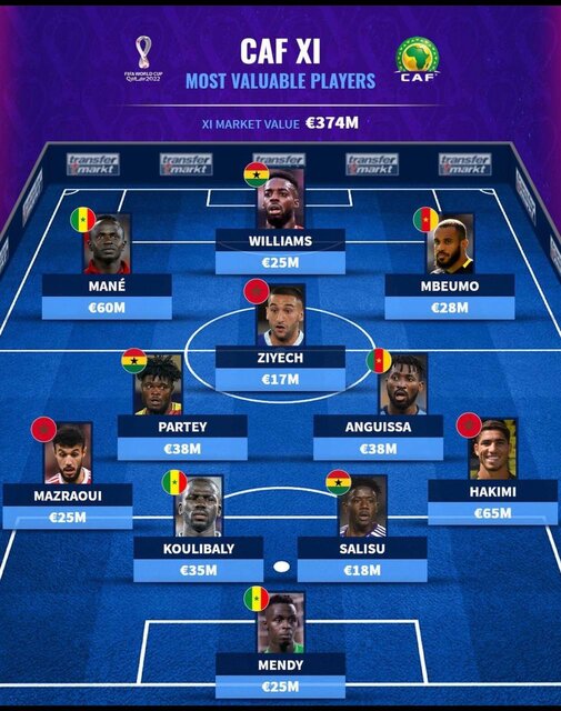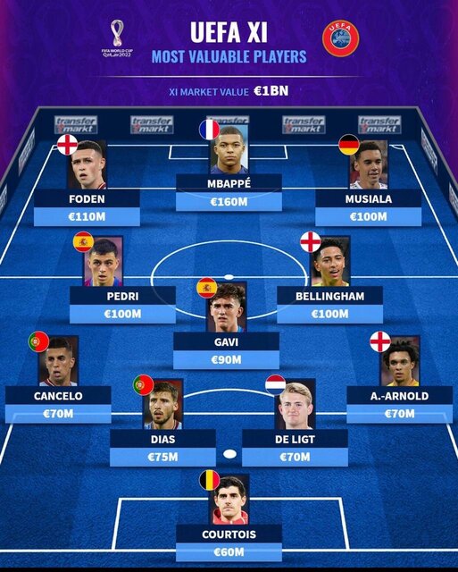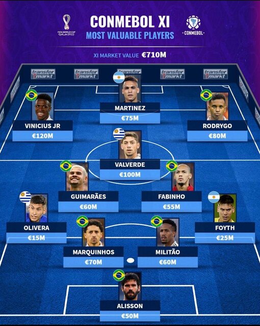 ترکیب با ارزشترین بازیکنان قارههای دیگر که در جام جهانی حضور خواهند داشت را در ادامه میبینید: