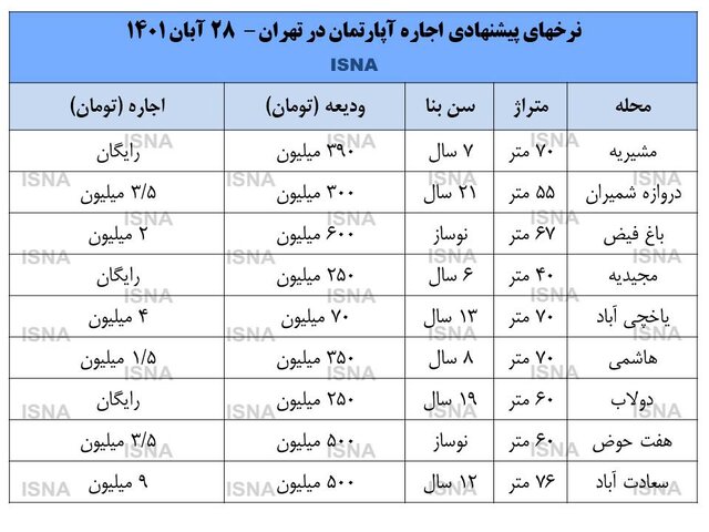 بیشترین افزایش اجاره بها در سال جاری ! + جدول