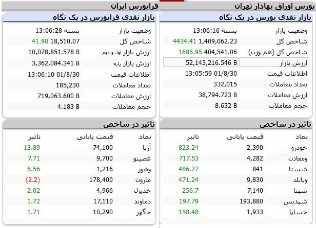 در آن سوی بازار سرمایه شاخص کل فرابورس هم با ۴۱ واحد افزایش رقم ۱۸ هزار و ۵۱۰ واحد را ثبت کرد.