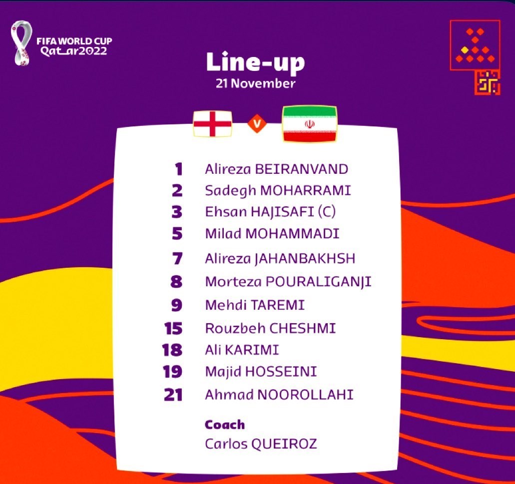 رونمایی از ترکیب ایران و انگلیس در جام جهانی قطر