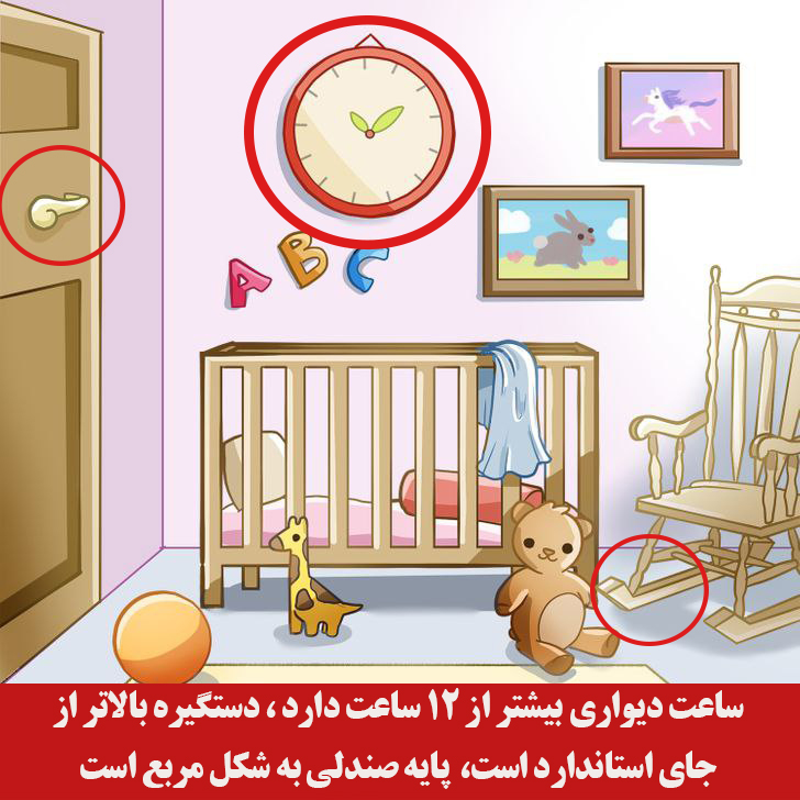 در این تصویر اتاق کودک 3 مشکل اساسی وجود دارد که فقط افراد باهوش می توانند هر 3 مشکل را پیدا کنند؟