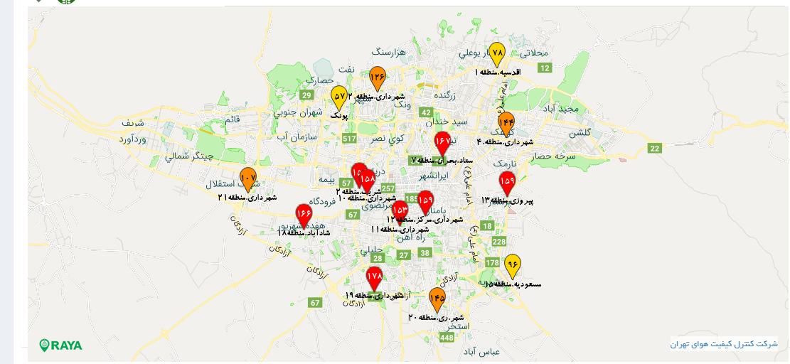 ستاد بحران منطقه ۷، شاخص آلودگی ۱۶۷