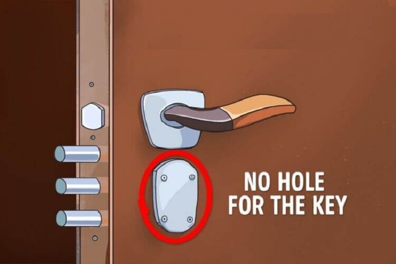 به قسمتهای مختلف در، دستگیره، قفل و غیره نگاه کنید. هیچ سوراخی برای کلید وجود ندارد.