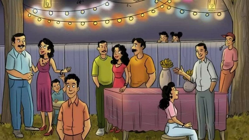 اگر به تمام افراد داخل باغ پارتی با دقت نگاه کنید، می توانید فردی که دزد است را شناسایی کنید. پسری که در سمت چپ تصویر است در حال سرقت دستبند یک زن است.