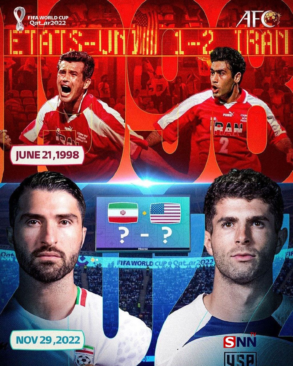AFC در پست جدید خود برای بازی ایران و آمریکا این پوستر را منتشر کرد و نوشت: تاریخ دوباره تکرار میشه؟