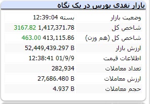 شاخص کل بورس تهران در پایان معاملات امروز با سه هزار و ١٦٧ واحد افزایش در ارتفاع یک میلیون و ٤١٧ هزار واحدی ایستاد.
