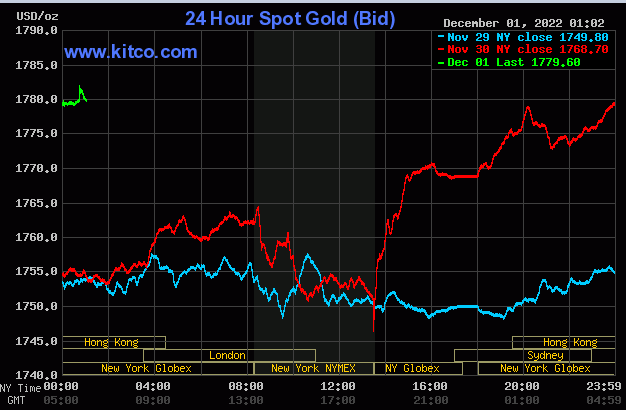 به گزارش سایت طلا،بهای هر اونس طلا در لحظه تنظیم این گزارش با 28 دلار افزایش به 1782 دلار رسید.با احتساب این رشد قیمت بازدهی هفتگی طلا به مثبت 0.8 درصد رسید و همچنین نوامبر به ماهی تبدیل شد که طلا از ابتدا تاکنون نزدیک به 8.3 درصد رشد قیمت داشته است
