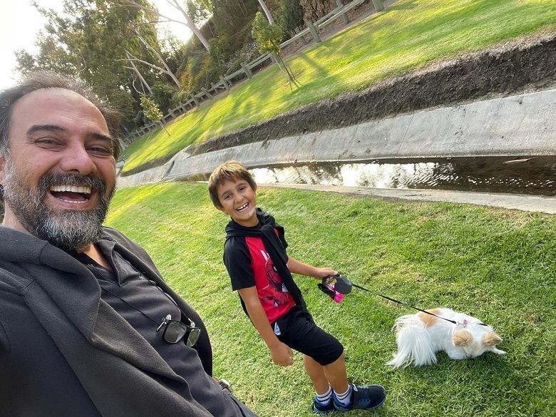 برزو ارجمند عکسی از گردش خود در کنار پسر و سگشان در آمریکا منتشر کرد.
