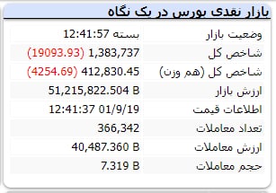 گفتنی است در پایان ساعت معاملات روز شنبه، ارزش معاملات حدود 4 هزار میلیارد تومان است که به نظر می رسد نسبت به روز های قبل با کاهش قابل توجهی روبرو باشد. همچنین لازم به توضیح است تا این لحظه (ساعت 12.30) ارزش معاملات خرد 2743 میلیارد تومان می باشد.