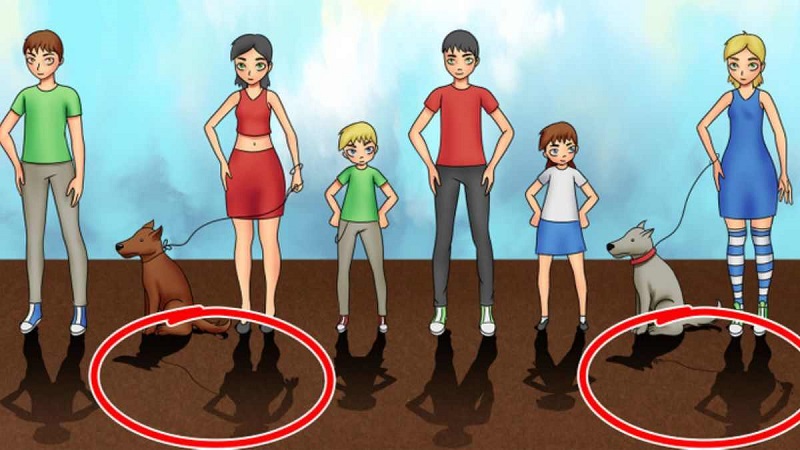اگر هنوز پاسخ را پیدا نکردید نگران نباشید، فقط به سایه های هر دو زن با سگ نگاه کنید. سایه ها عوض شده اند.