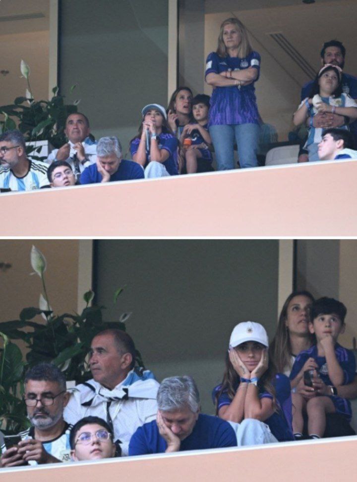 استرس همسر لیونل مسی پیش از شروع فینال روی سکوها + عکس