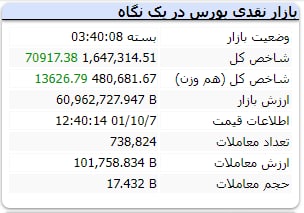 بر این اساس در معاملات امروز شاخصکل 70 هزار و 917 واحد و شاخص هموزن بیش از 13 هزار واحد رشد کرده است.
