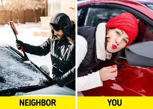 فرض کنید میدانید که فردا وقتی از خانه بیرون میروید هوا برفی است و یک متر برف روی ماشین شما نشسته است. چه کنیم تا برفها روی سقف و کاپوت یخ نزنند؟ تنها کافی است برای حل این مشکل از محلول سرکه به شیشهها اسپری کنید. ۳ جزء سرکه را داخل یک بطری آب بریزید و به شیشهها اسپری کنید.