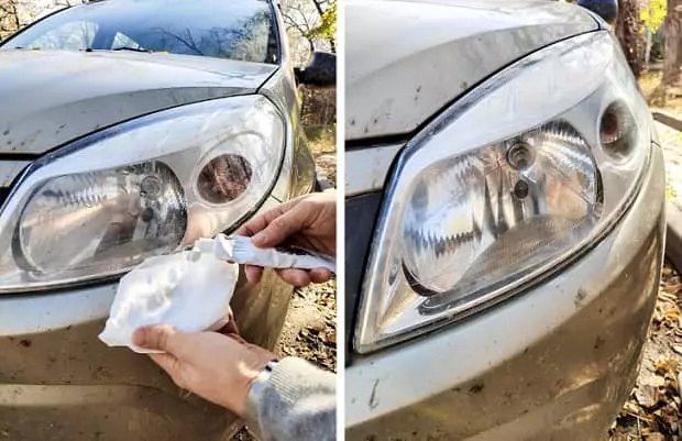 ۱۲. تمیز کردن چراغ های ماشین با خمیر دندان