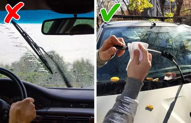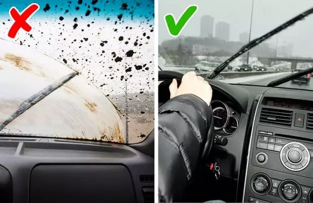 بد نیست برای روزهای برفی و بارانی فکری به حال برف پاک کنها بکنیم. مایع تمیزکننده شیشه را به تکه پارچهای آغشته کنید و برف پاک کنها را با آن تمیز نمایید. این کار خودش را در روزهای بارانی و برفی نشان خواهد داد. اگر برف پاک کن صدا میدهد، کافی است مقداری اسپری سیلیکون به قسمتهای متحرک آن بزنید تا دیگر صدایی نشنوید. جوراب کشیدن روی آنها نیز مفید فایده خواهد بود.