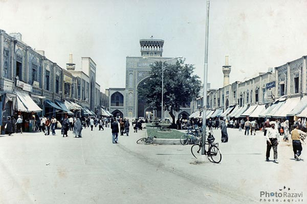 این عکس که دقیقا ۴۰ سال پیش یعنی در سال ۱۳۵۲ ثبت شده، نمای داخلی بست پائین خیابان وایوان نقاره خانه حرم را نشان می دهد. نمایی که دیگر الان اثری از مغازه ها و دوچرخه و جزئیات دیگر این عکس در آن نیست.
