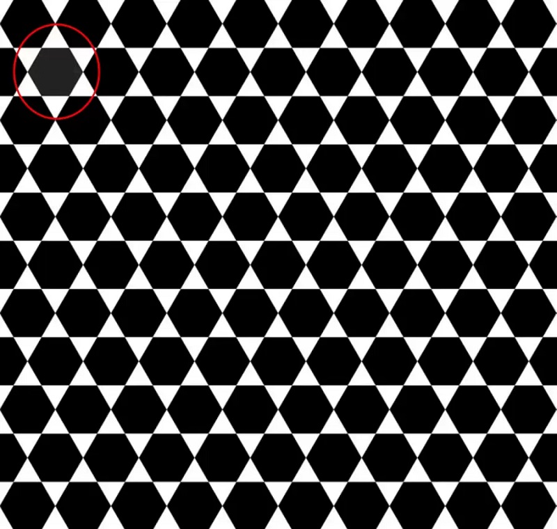 پیدا کردن شش ضلعی متفاوت، خیلی سخت است. اگر آن را پیدا نکردید نگران نباشید، به تصویر زیر نگاه کنید.