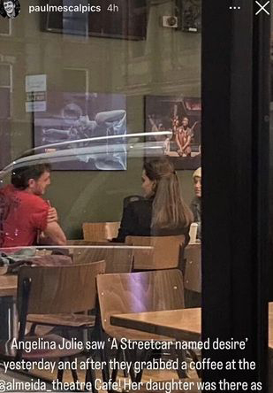 یکی از طرفداران عکسی از این سه نفر در اینستاگرام گرفت و نوشت: «آنجلینا جولی دیروز و بعد از اینکه “اتوبوسی به نام هوس» را دید در کافه تئاتر قهوه خوردند! دخترش هم آنجا بود.»
