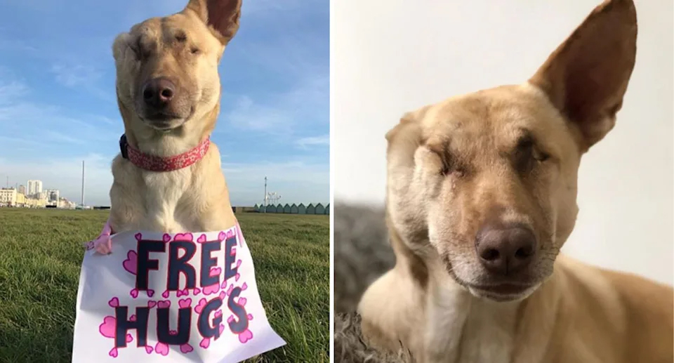 این سگ در حالی پیدا شد که 17 گلوله ساچمه ای در بدنش بود، گوشش پاره شده بود، چشمان او نابینا شده و باردار بود.