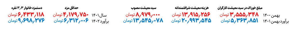 ازآنجاییکه فلسفه تعیین دستمزد سالهای جدید برای خنثیسازی اثرات تورم و تحولات اقتصادی بر معیشت کارگران و جلوگیری از فقیرتر شدن آنهاست، در جریان مذاکرات مزد۱۴۰۲ فقط برای حفظ وضعیت موجود کارگران باید حداقل مزد و سایر سطوح مزدی کارگران حدود ۵۱درصد افزایش یابد که در این صورت، حداقل مزد به حوالی ۶.۳میلیونتومان و حداقل مزد و مزایای یک کارگر سرپرست خانوار ۳.۳نفره به ۹.۷میلیونتومان خواهد رسید.